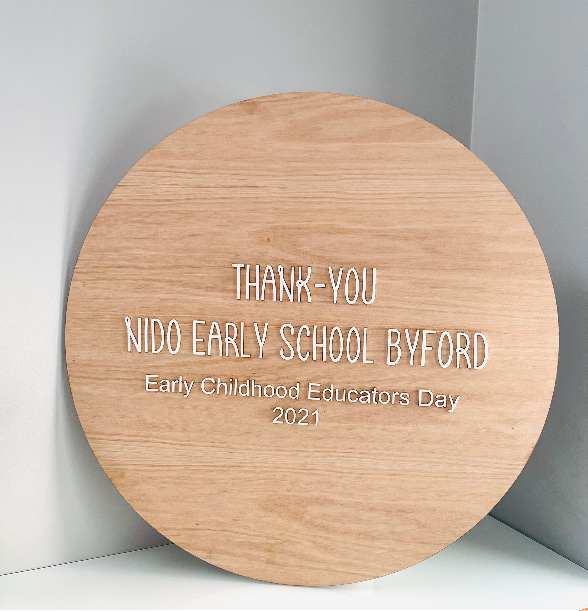 Custom 60cm plaque with all acrylic writing. Acrylic can be any colour, if other than black or white please specify in the custom text box along with the wording you would like. I will email you the final design within 5 business days for your approval prior to work commencing.